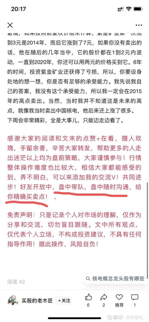 长期持有某一只股票,其风险并不比短期持有低多少,而且更考验人们的心理承受能力。无论是2021年之前的白马股,还是现在的大牛股紫金矿业,在历史上它都有巨额的波动。我们回看历史的时候,已经忘记了当时的窘境,如果按照前复权价格来计算,紫金矿业第一次涨到3元是2014年,而后它涨到了7元,如果你没有卖出的话,他在随后的几年当中,它的股价都在1到2元内波动,一直到2020年,你还可以用两元的价格买到它。6年的时间,投资紫金矿业还获得了亏损,所以,你要设身处地的想一想,你是否有足够的承受能力。我先说我自己的答案,我没有这个承受能力,所以我一定会在2015年的高点卖出。当然,当时我并不知道这是未来的高点,就像我当时卖出中国核电,他后来还上涨了很多。