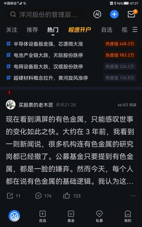 @我在北国吃火锅:所以是不是更应该去思考分析有色的卡基本面呢?如果只是用大家的共识来推断到顶到底是不是不客观? 我想表达的是应该专注在思考行业发展的逻辑上,尤其像有色这种超级周期股。 万物皆周期,做投资不是猜测资金啊,而是应该研究这个周期处于什么阶段啊。