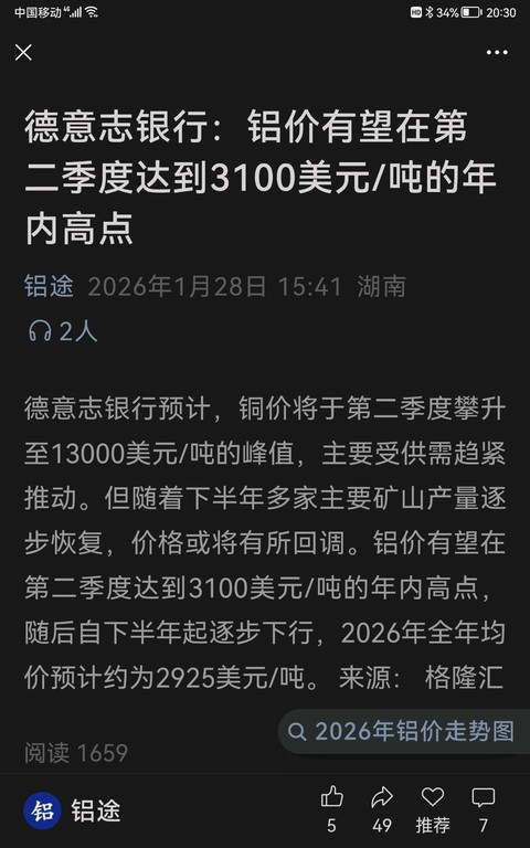 @买股票的老木匠:电解铝是闷声发大财,按现在的市价,今年电解铝厂就跟印钞厂似的,比铜金赚钱多了,只是铜金占据了市场的C位,情绪价值高